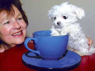 O maltês da neozelandesa Cheryl McKnight parou de crescer quando tinha apenas 2 meses e atingiu aproximadamente 20 cm de comprimento. Cheryl diz que o cão cabe dentro de uma xícara de chá e dorme em uma caixa de sapatos.